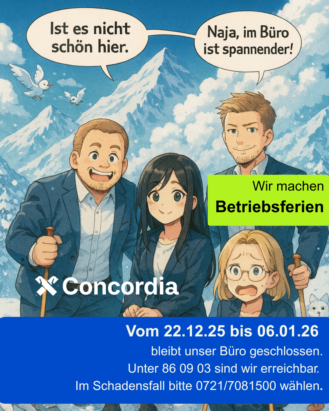 Betriebsferien bei Concordia vom 22.12.2025 bis 06.01.2026
